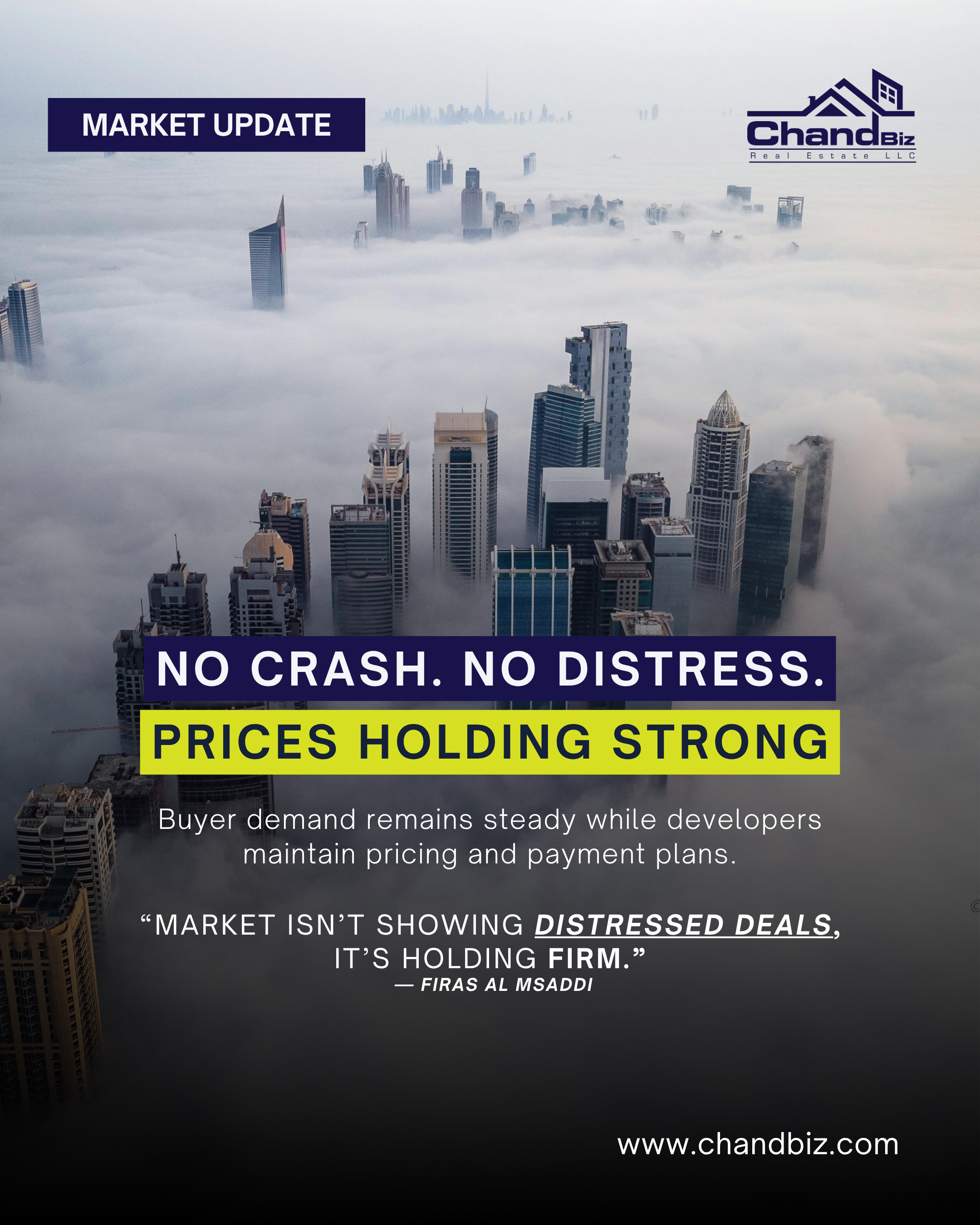 Dubai’s real estate market is not experiencing a crash — it is demonstrating resilience. With stable pricing, sustained demand, and strong institutional backing, the sector continues to hold its ground despite global and regional challenges.