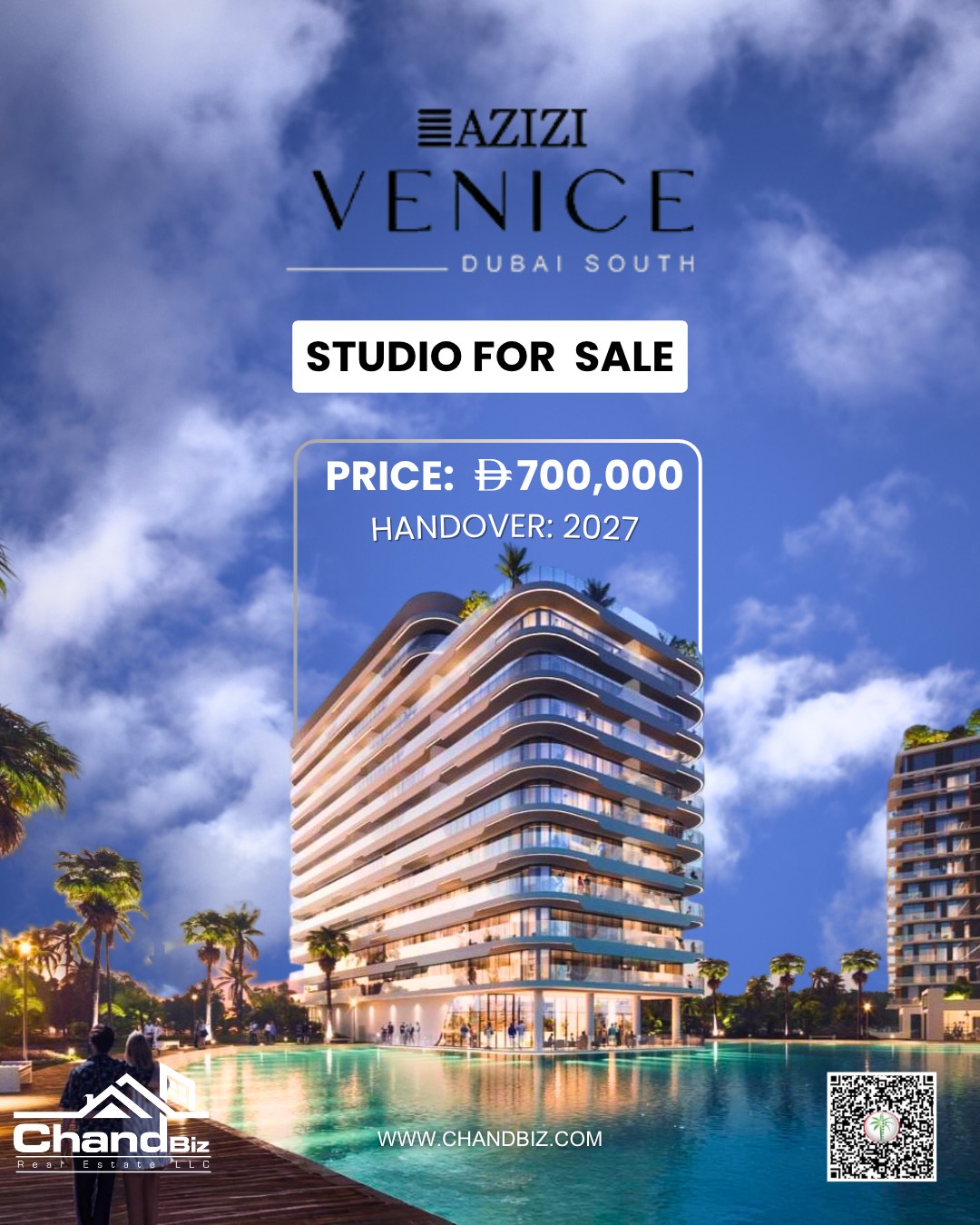Chand Biz Real Estate is proud to offer this luxurious selection of residences at Azizi Venice 11, Dubai South. This premier waterfront development by Azizi Developments combines contemporary design with timeless elegance, offering studios, 1, 2, and 3-bedroom apartments, as well as villas, all crafted with high-end finishes. Residents will enjoy an extraordinary lifestyle with access to a stunning 18 km freshwater lagoon featuring artificial waves, gymnasium, swimming pool with kids pool, restaurants, cafes, and lush green spaces. Flexible payment plans start from 630K AED, making this the perfect opportunity to experience luxury living in one of Dubai’s most prestigious communities.